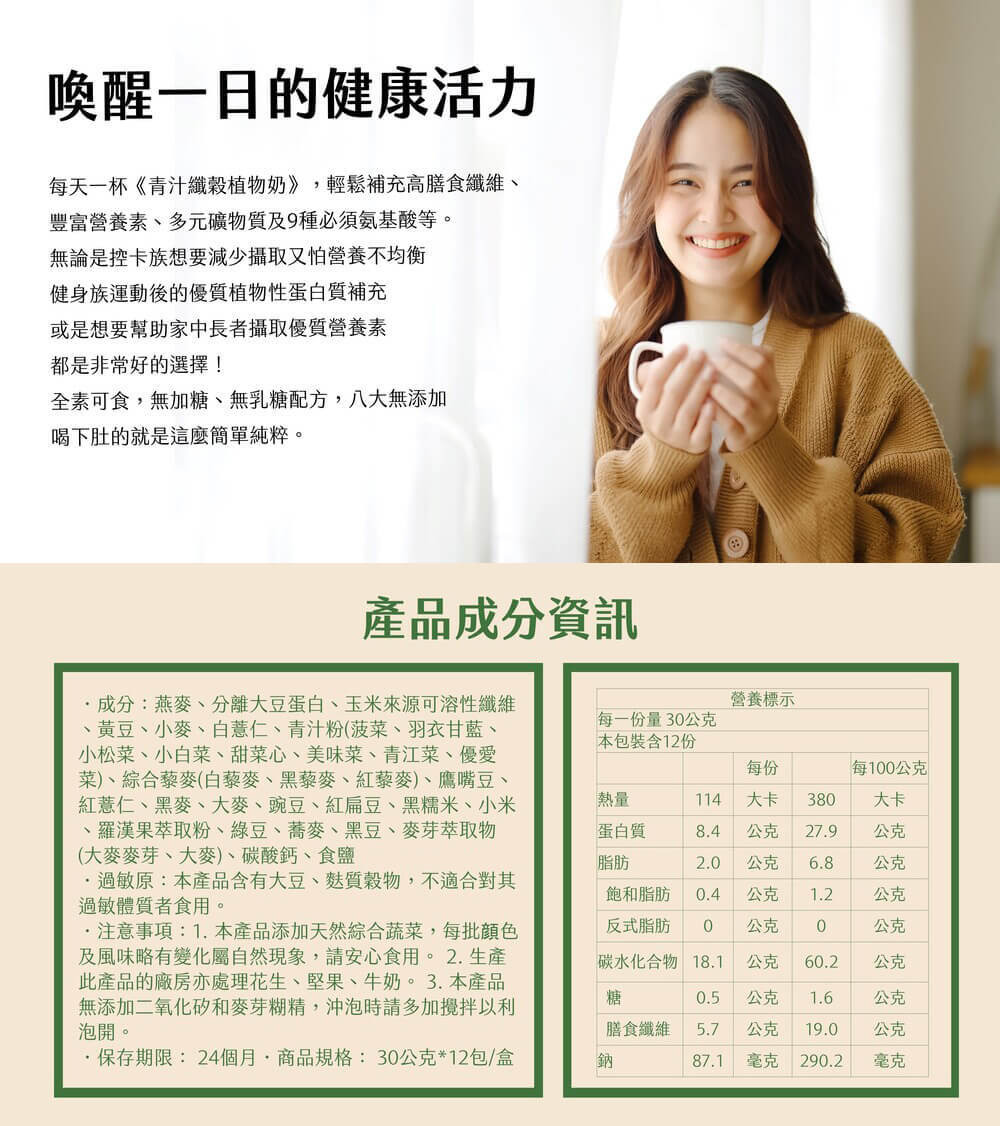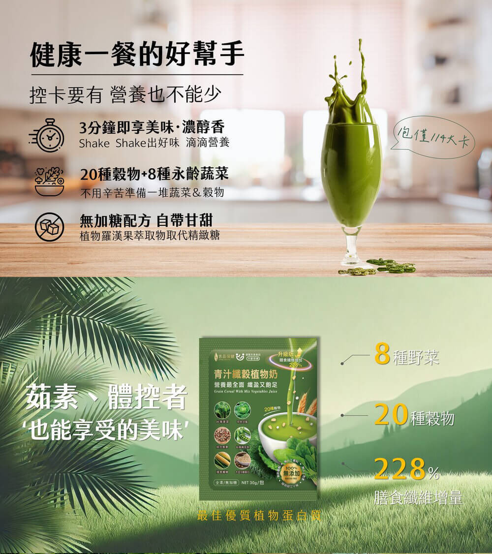 - 全素可食,適合控卡族、健身族、銀髮族補充營養