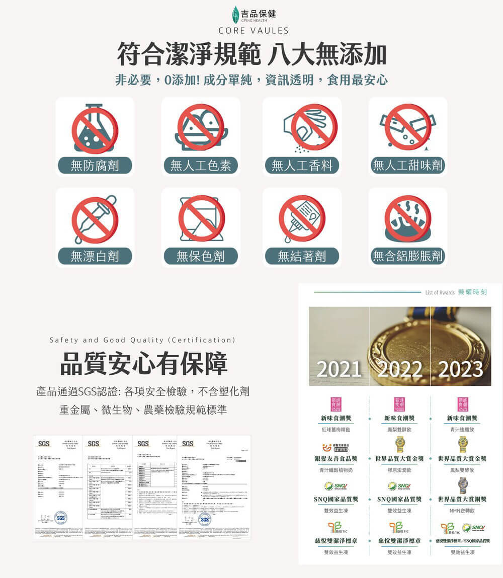 - 100%無添加,八大無添加,符合潔淨標準