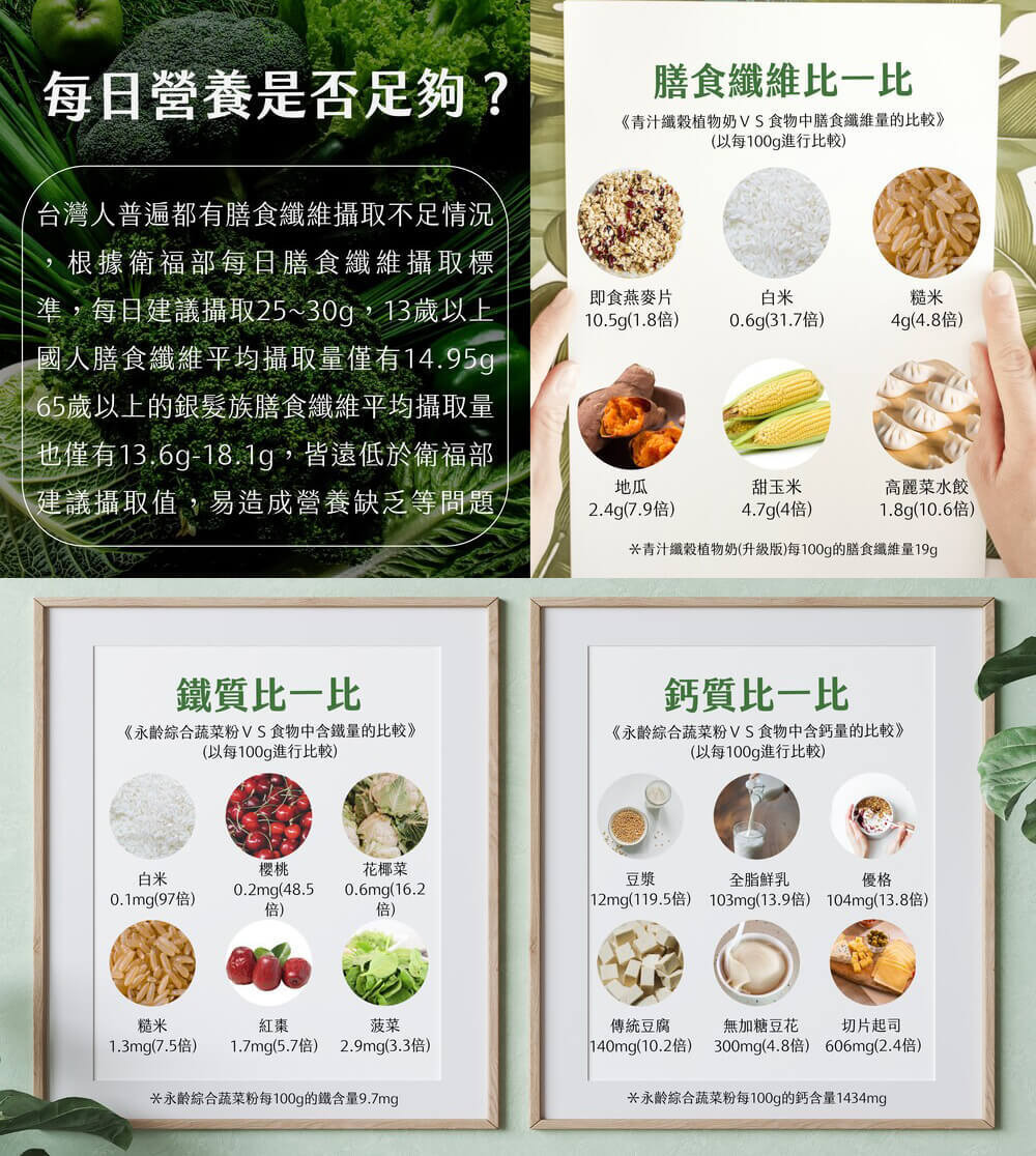 - 20種超級榖物+8種永齡新鮮蔬菜,高纖好輕盈
