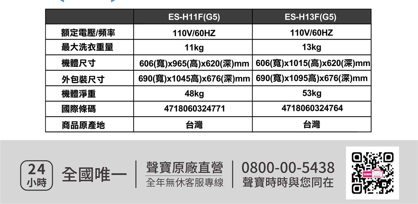 【聲寶】單槽定頻 13KG洗衣機 ES-H13F(G5) quantity