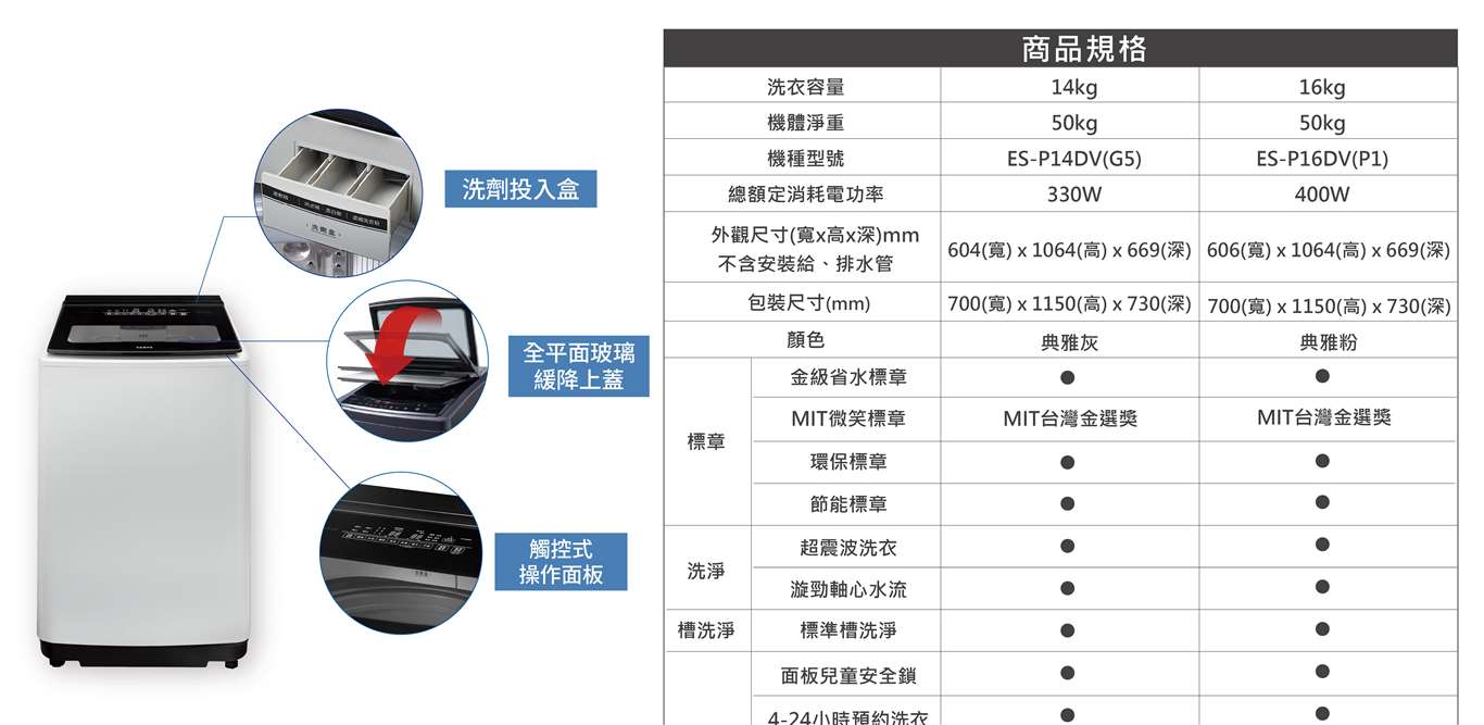 【聲寶】單槽變頻 16KG洗衣機ES-P16DV(P1) quantity