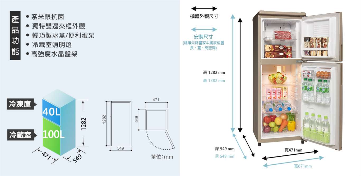 【聲寶】140公升一級能效定頻冰箱(SR-C14Q)