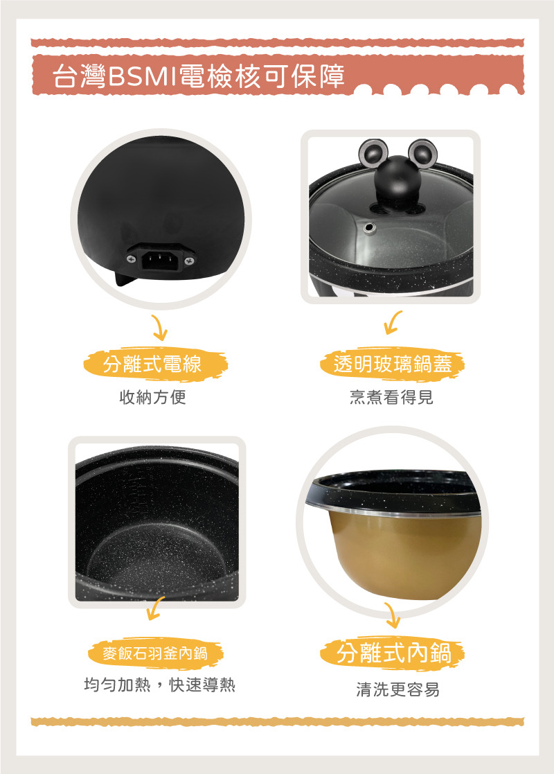 【迪士尼正版授權】蒸、煮、煲、燉多功能料理鍋,不沾內鍋,食材不沾黏。