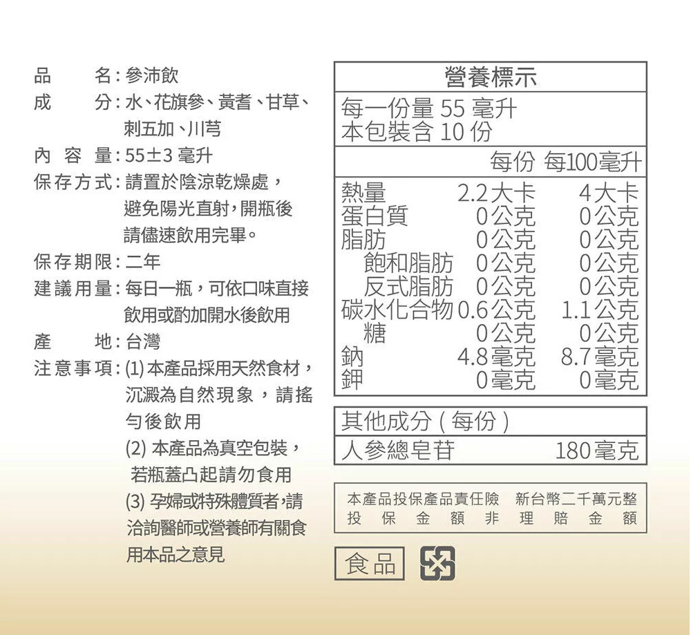 【鴻參】參沛飲滋補禮盒新配方55ml*10/盒 quantity