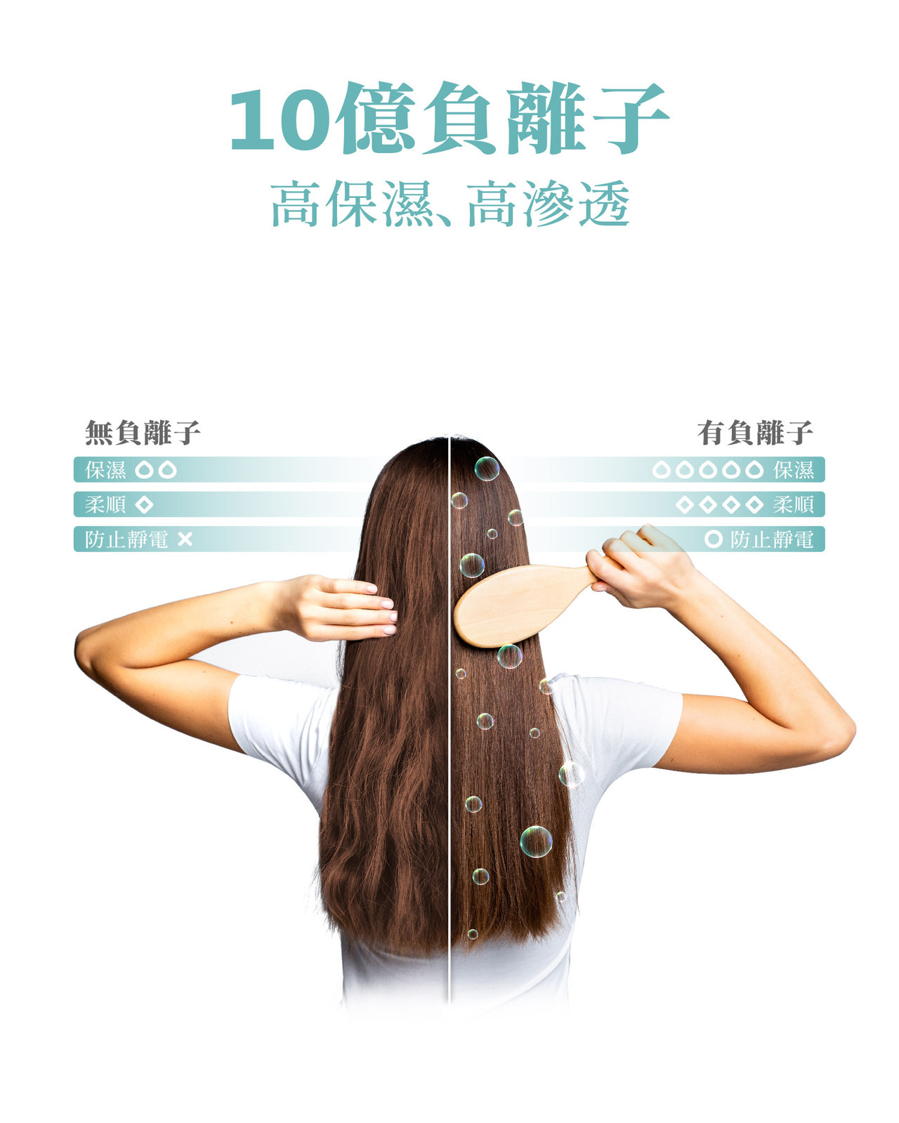 10億負離子深層修護,減少毛躁與靜電,打造絲滑光澤感!